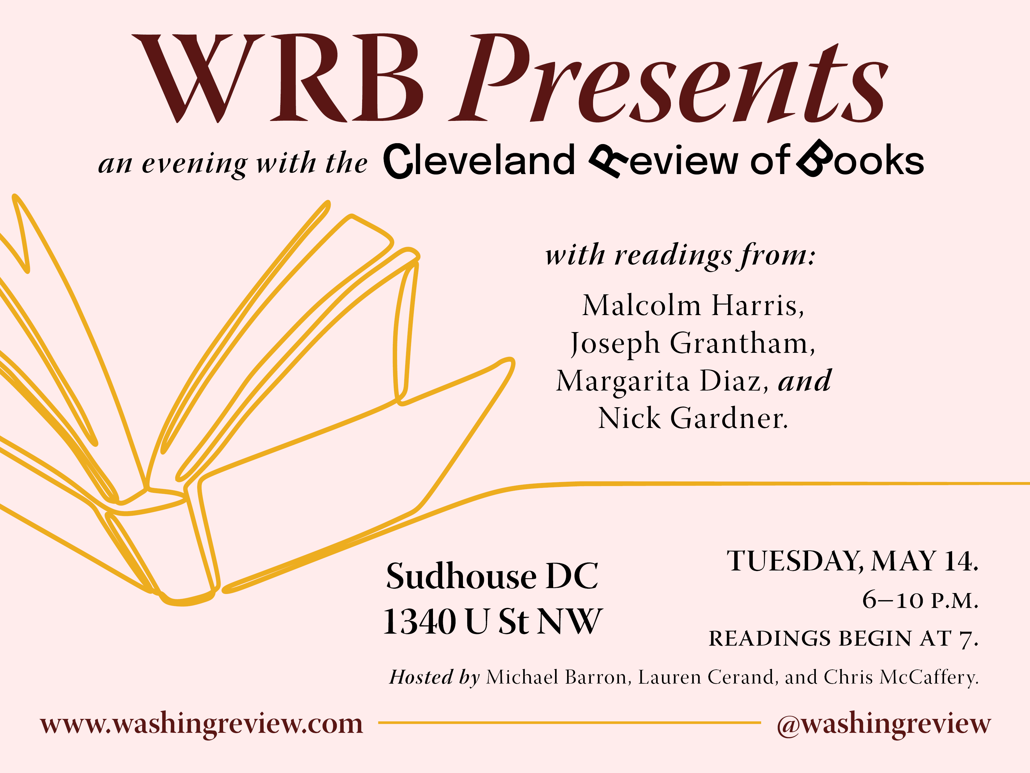 The WRB Presents the next in a regular series of readings attracting and spotlighting literary talent in Washington, D.C., hosted by Michael Barron, Lauren Cerand, and Chris McCaffery. On May 14, these writers will read their work in an evening co-presented by the Cleveland Review of Books: